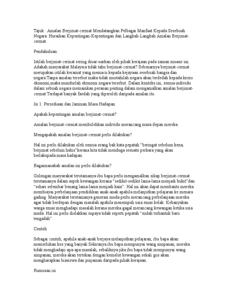 Karangan Kebaikan Berjimat Cermat Tingkatan 1 / Contoh Karangan Bahasa Melayu Bm Tingkatan 1 2 3 Bumi Gemilang